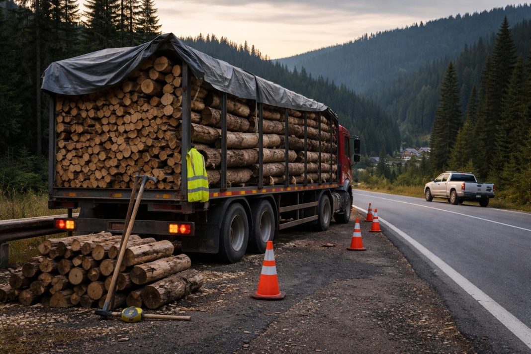 A vezető bemutatta a faanyag kísérő okmányát, amely szerint a szállítás több tüzelőfa fajtát érintett. A helyszínen a Râșnovi erdőgazdaság szakembereivel közösen végeztek felmérést: a rakományt felmérték és becsülték, és kiderült, hogy a szerelvényben körülbelül 3 köbméter faanyag található, amelyet a papírokban rögzített adatok alapján másként jelöltek meg.